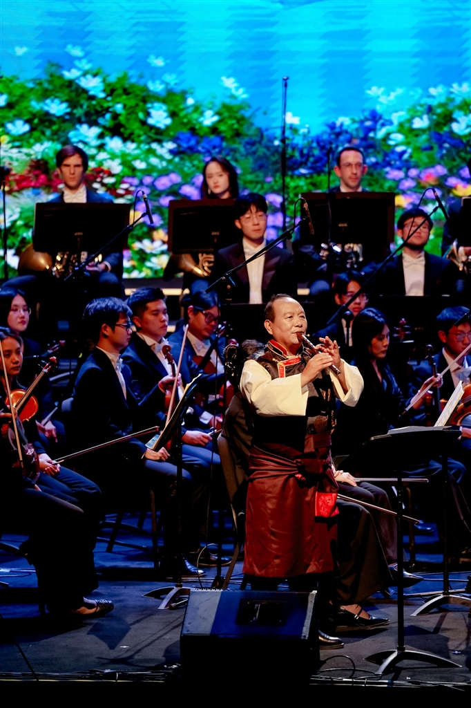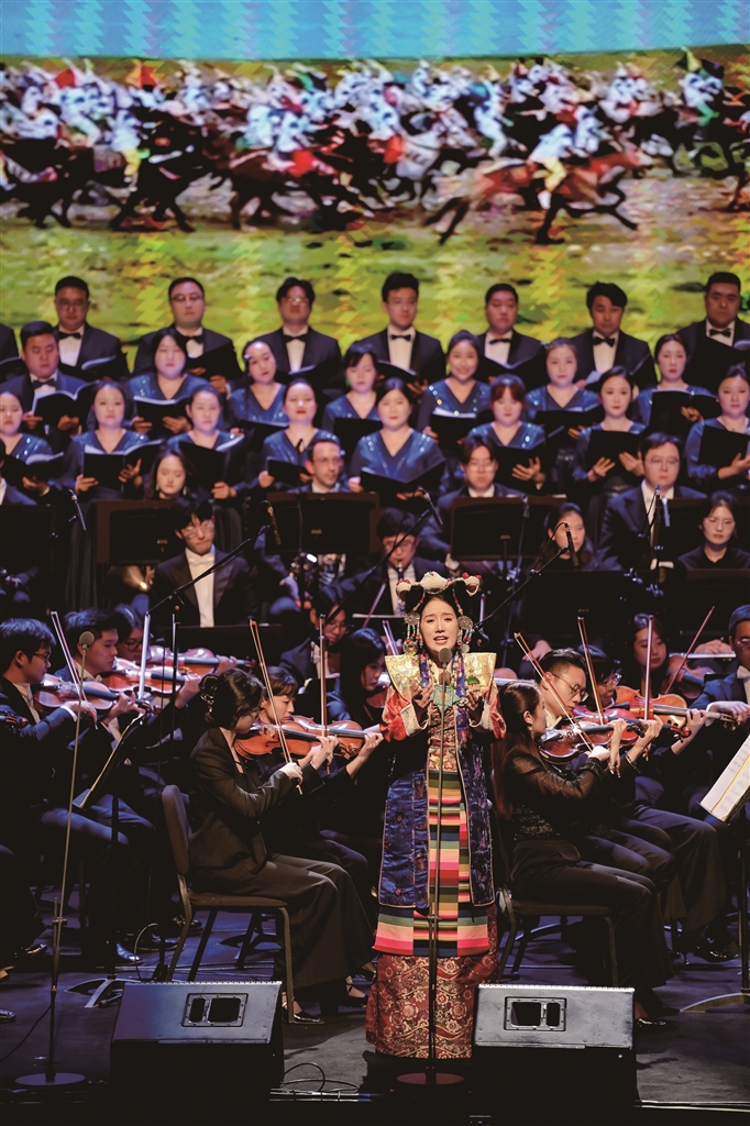 藝術(shù)形式的創(chuàng)新融合是本次音樂會的一大亮點(diǎn)。二重唱《茉莉與格桑》優(yōu)美詮釋了民族文化的交流共生;器樂演奏《“飛弦踏春”與“賽馬”》則讓著名二胡演奏家陳軍的激昂琴聲與扎念琴演奏員措姆的熱情彈奏展開對話,碰撞出令人振奮的藝術(shù)火花。從展現(xiàn)拉薩當(dāng)代生活的電視劇插曲《藍(lán)天上的云》,到描繪鄉(xiāng)村振興新貌的《童話里的格林村》,再到融合原生態(tài)山歌與專業(yè)唱法、曾為中央代表團(tuán)獻(xiàn)唱的《珠穆朗瑪》,一系列新創(chuàng)作品生動展現(xiàn)了傳統(tǒng)與現(xiàn)代交織、充滿活力的社會主義新西藏。