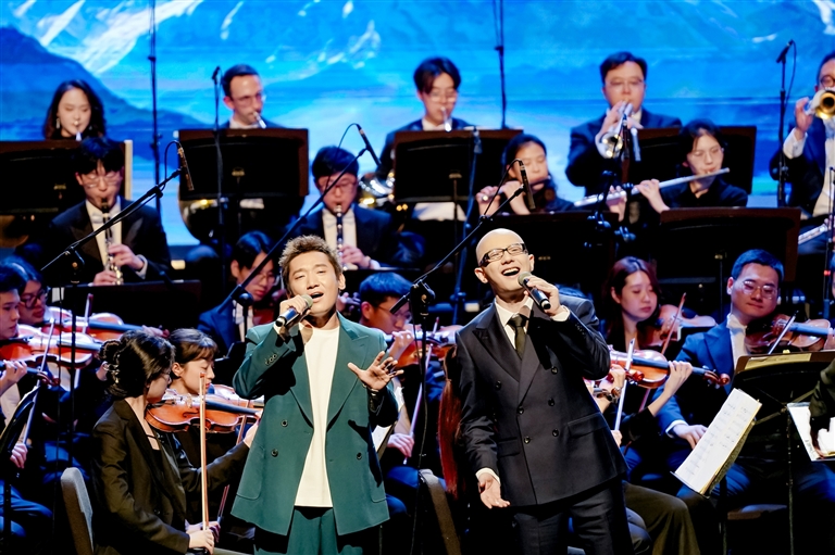 音樂會的敘事不僅關(guān)乎歷史,更著眼于當(dāng)下蓬勃發(fā)展的新西藏。詩朗誦《我來了,西藏》以其作者——從江南水鄉(xiāng)援藏留藏的干部、魯迅文學(xué)獎獲得者陳人杰的親身經(jīng)歷為底色,由濮存昕、溫玉娟兩位表演藝術(shù)家深情演繹,道出了無數(shù)建設(shè)者對這片土地的眷戀。而由援藏干部、北京科技大學(xué)副校長鄭安陽與藏族青年歌手露丹卓瑪共同演唱的《老西藏》,則是一次深刻的精神接力,深情謳歌了“老西藏精神”。