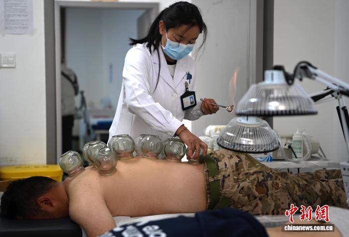 圖為西藏軍區(qū)總醫(yī)院中醫(yī)科醫(yī)師在給官兵做拔罐理療。西藏軍區(qū)總醫(yī)院供圖