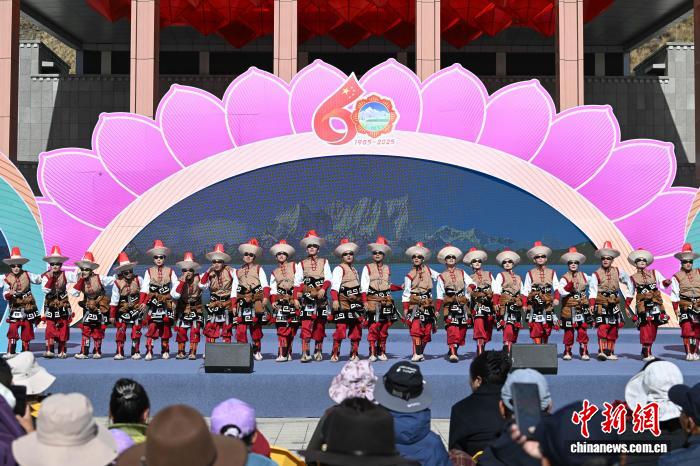 11月2日,西藏自治區(qū)“大地歡歌 格?;ㄑ莩黾尽比珔^(qū)縣(區(qū))藝術(shù)團惠民演出活動,在拉薩市堆龍德慶區(qū)民族團結(jié)主題公園精彩上演。據(jù)悉,此次演出由西藏自治區(qū)文化和旅游廳主辦,西藏自治區(qū)群藝館(區(qū)非遺保護中心)承辦,各市地文旅局及拉薩市堆龍德慶區(qū)委宣傳部、文旅局協(xié)辦,以展示基層文化活力、豐富民眾精神生活為核心,匯聚了西藏各縣(區(qū))藝術(shù)團骨干力量,這些扎根鄉(xiāng)土的“文藝輕騎兵”,成為基層文化傳播的“主力軍”。圖為山南市隆子縣藝術(shù)團表演打墻舞《扎西康?!?。中新社記者 貢嘎來松 攝