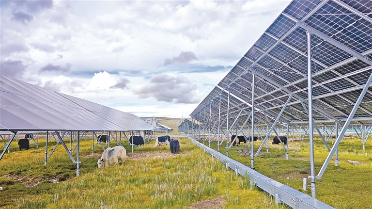 記者了解到,那曲市充分結(jié)合牧業(yè)發(fā)展實際情況,以“牧光互補”的形式新建光伏項目,將光伏板高度設(shè)置不低于1.8米,不擠占草地,便于牛羊等牲畜覓食休憩,確保放牧與發(fā)電“兩不誤”,促進光伏與畜牧業(yè)高度融合發(fā)展,不僅高效利用了土地資源,而且對帶動群眾增收、推進鄉(xiāng)村振興產(chǎn)生了示范作用。