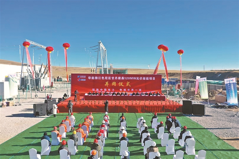 華能雅江色尼區(qū)甘丹康桑120MW光伏儲能項目并網(wǎng)儀式現(xiàn)場(資料圖片)。圖片由那曲市能源局提供