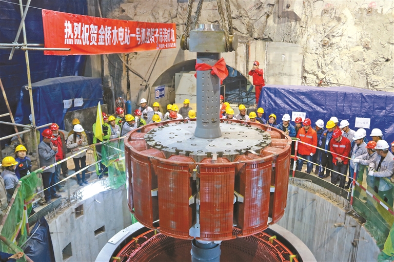 那曲易貢藏布金橋水電站一號機組轉(zhuǎn)子吊裝現(xiàn)場(資料圖片)。圖片由那曲市能源局提供