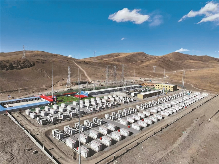 西藏開投色尼區(qū)達嘎普100兆瓦/400兆瓦時獨立構(gòu)網(wǎng)型儲能項目(資料圖片)。圖片由那曲市能源局提供
