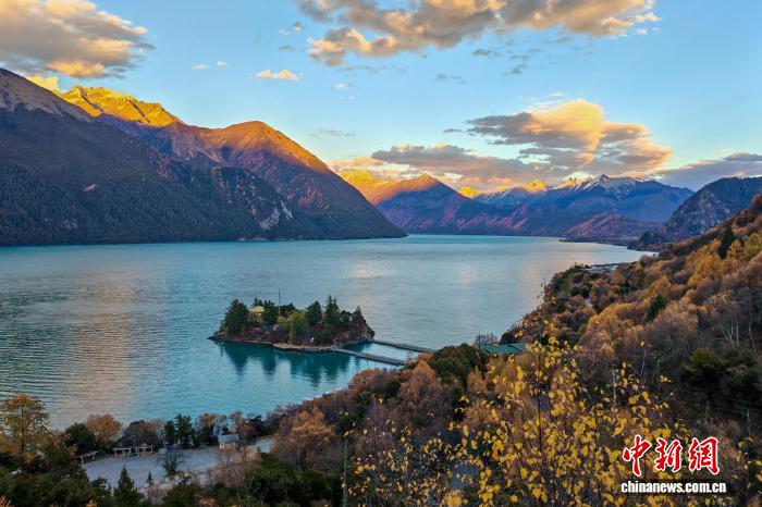 11月8日傍晚,西藏林芝巴松措景區(qū)迎來晚霞風光。中新社記者 江飛波 攝