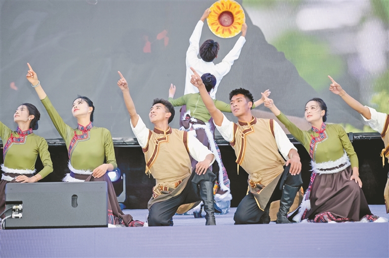 圖為松贊藝術(shù)團(tuán)帶來(lái)的舞蹈節(jié)目《向陽(yáng)花開》。