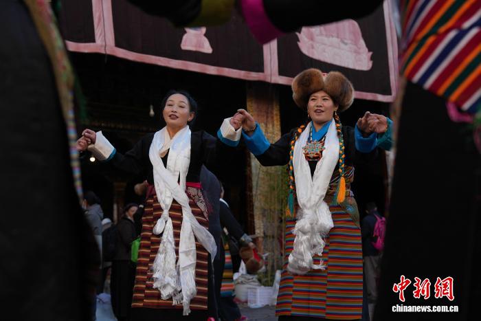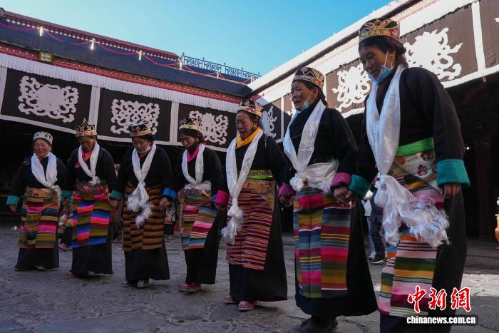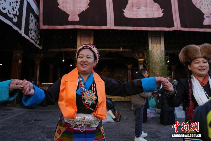 圖為白拉姆節(jié)臨近之際,信眾在大昭寺內敬獻供品后載歌載舞的場景。貢確 攝