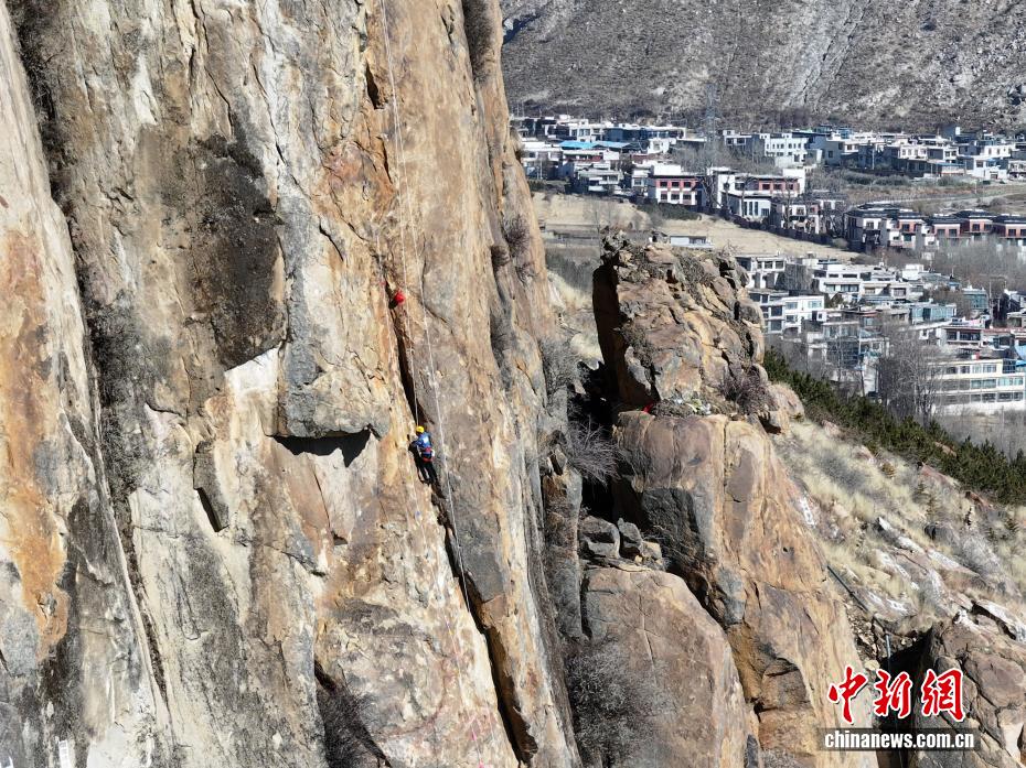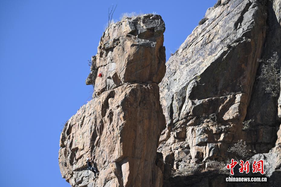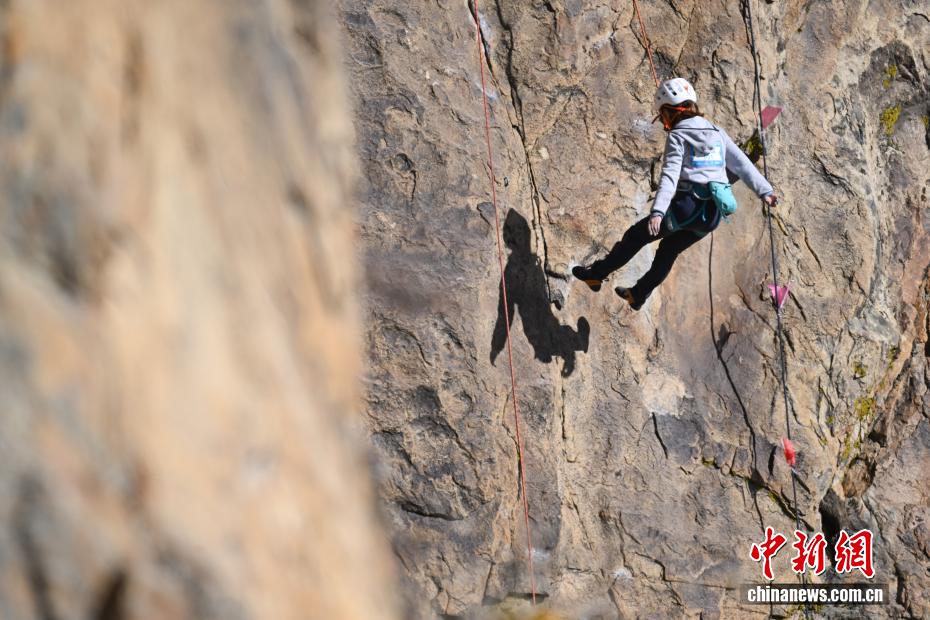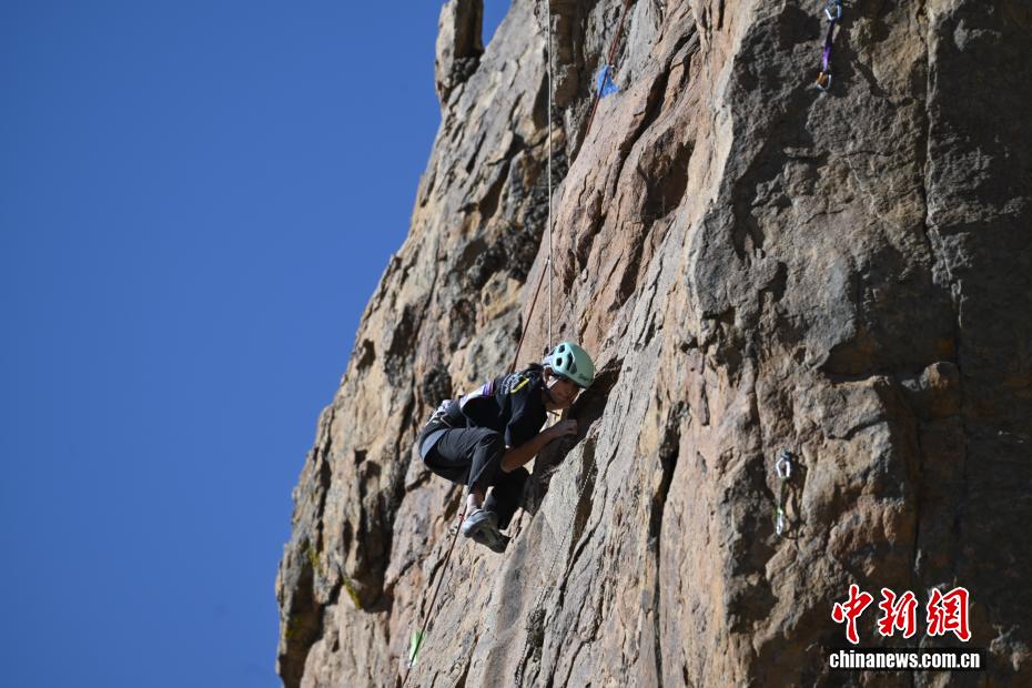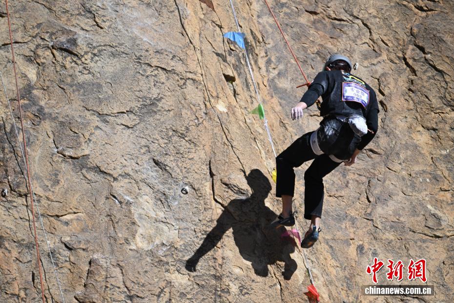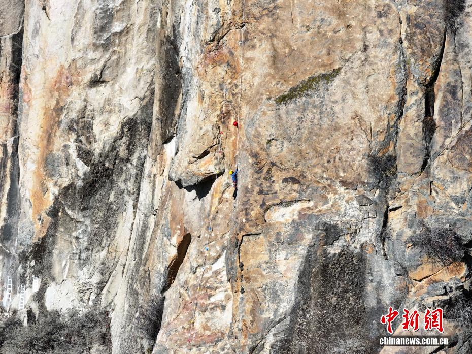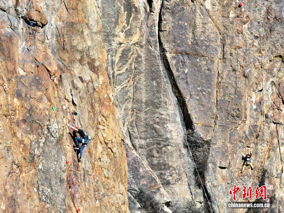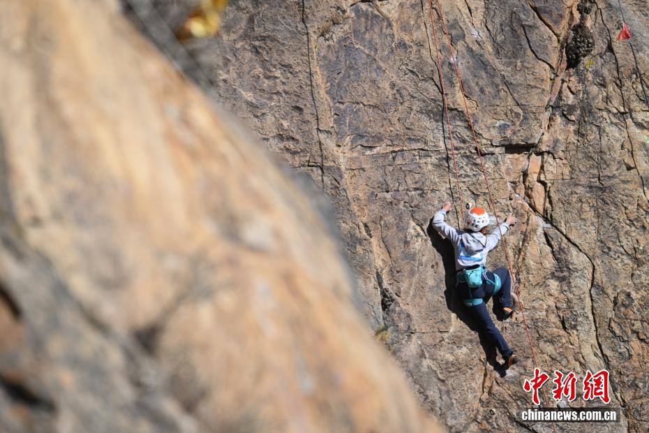 11月29日,2025西藏自治區(qū)攀巖自然巖壁公開賽在拉薩市奪底溝吉倉(cāng)自然巖壁場(chǎng)地開賽。來(lái)自中國(guó)全國(guó)的70名運(yùn)動(dòng)員、高校學(xué)生及社會(huì)攀巖愛好者參賽。中新社記者 貢嘎來(lái)松 攝