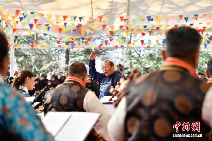 圖為群眾音樂(lè)會(huì),民樂(lè)合奏《我的家鄉(xiāng)好》精彩上演。中新社記者 貢嘎來(lái)松 攝