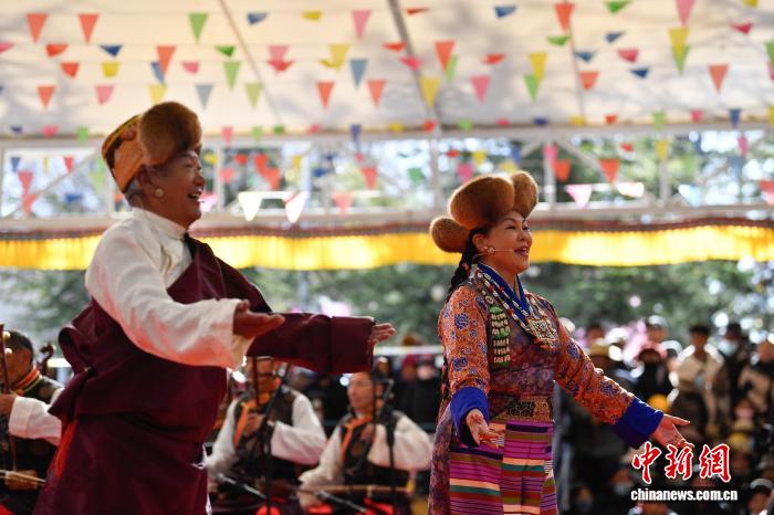 圖為群眾音樂(lè)會(huì)表演拉薩堆諧《強(qiáng)確拉》。中新社記者 貢嘎來(lái)松 攝