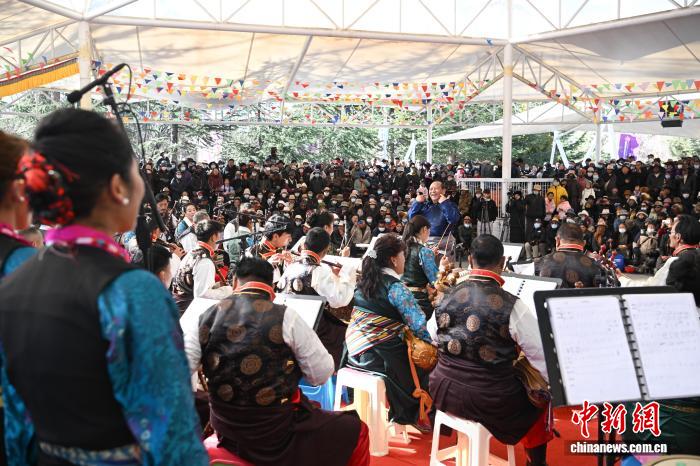 12月20日,為熱烈慶祝西藏自治區(qū)成立60周年,由西藏自治區(qū)文化和旅游廳主辦的格?;ㄑ莩黾尽履辍拔覀兊墓?jié)日 群星薈萃”群眾音樂(lè)會(huì)在拉薩宗角祿康公園精彩上演。音樂(lè)會(huì)節(jié)目豐富多樣,涵蓋民樂(lè)合奏、少兒藏戲、獨(dú)唱重唱等多種形式。傳統(tǒng)韻味與時(shí)代氣息交融,各族群眾以歡歌贊頌發(fā)展巨變,共迎美好新年。