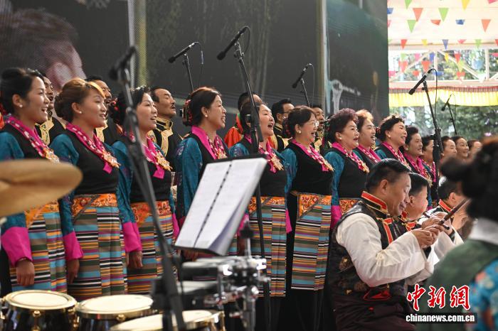 圖為群眾音樂(lè)會(huì)獨(dú)唱《祝福祖國(guó)》。中新社記者 貢嘎來(lái)松 攝