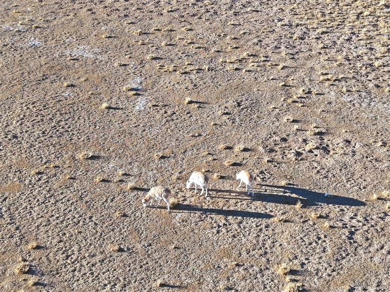我們下車。未來(lái)得及扣上的外套瞬間被風(fēng)灌滿,幾乎要撕裂。雙手在寒風(fēng)中顫抖著拉上拉鏈。舉起手機(jī)、相機(jī),卻不知如何構(gòu)圖,有人笑著感嘆:“這片天地太大了,大得失去了參照。完全拍不出這份壯美。”索性大家把手揣回衣兜,180度轉(zhuǎn)動(dòng)著腦袋、用眼睛細(xì)細(xì)掃描,將羌塘高原的生態(tài)盛景直接刻入記憶。