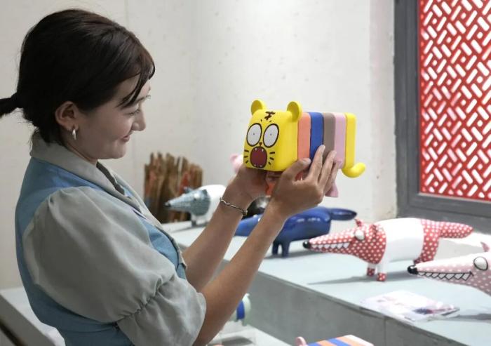 2025年8月6日,西藏拉薩蓮華之寶中華藏瓷文化旅游體驗園景區(qū)里,工作人員展示卡通陶瓷工藝制品。該體驗園集展覽、銷售與文化體驗于一體,通過與高校開展校企合作等方式,將唐卡繪畫藝術(shù)與陶瓷工藝結(jié)合,傳播優(yōu)秀傳統(tǒng)文化。中新社記者 李林 攝