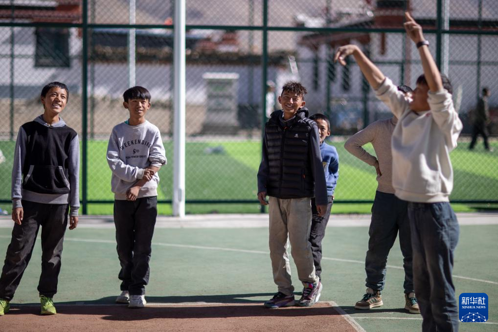 1月5日,少年在定日縣長所鄉(xiāng)森嘎村的籃球場打球。新華社記者 李鍵 攝