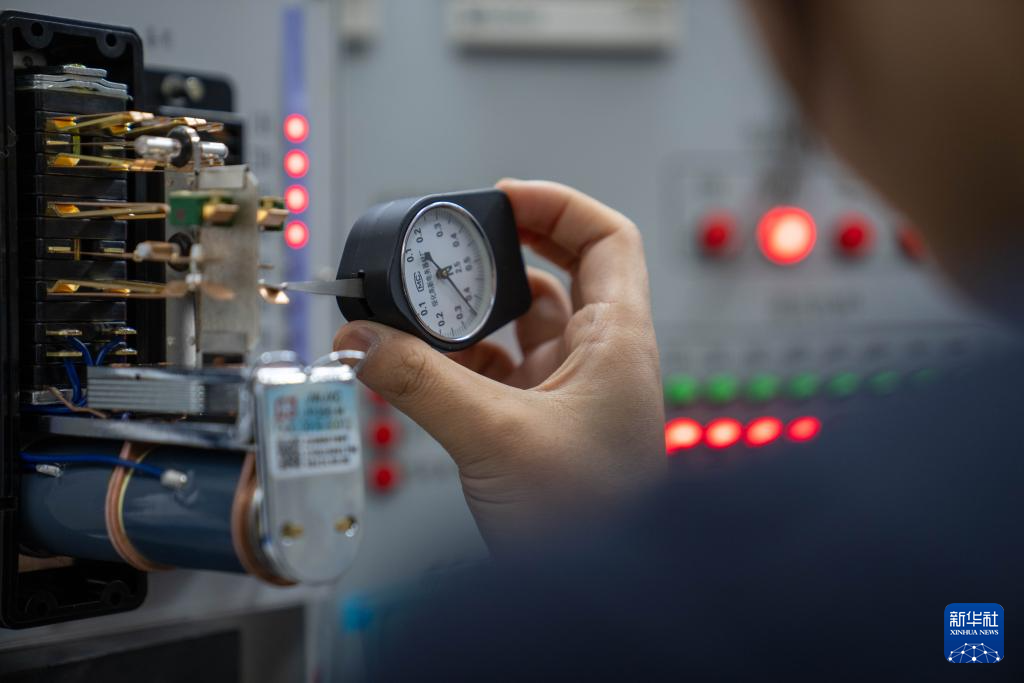 1月6日,拉薩基礎(chǔ)設(shè)施段電務(wù)專修車間繼電器檢修工區(qū)的信號工丁增央金在測試?yán)^電器節(jié)點壓力。新華社記者 旦增尼瑪曲珠 攝