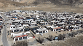 1月5日,在定日縣長所鄉(xiāng)森嘎村村史館前的廣場上,小朋友背著妹妹玩耍。新華社記者 姜帆 攝