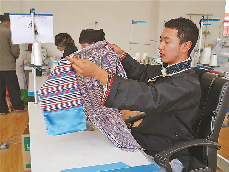 技藝的創(chuàng)新與市場的拓展,也為家鄉(xiāng)的農(nóng)牧民群眾帶來了實(shí)實(shí)在在的收益。始終心系群眾的米瑪堅(jiān)才,系統(tǒng)培訓(xùn)了18名農(nóng)牧民,使他們從零基礎(chǔ)慢慢成長為熟練掌握藏戲服飾制作技藝的手工藝人,不用背井離鄉(xiāng)就能在家門口掙錢。“以前靠種地過日子,收入不穩(wěn)定,現(xiàn)在在合作社有固定收入,一年下來能掙3萬多元,顧家掙錢兩不誤,特別知足?!焙献魃绲霓r(nóng)牧民員工談起這份工作,臉上滿是笑意。