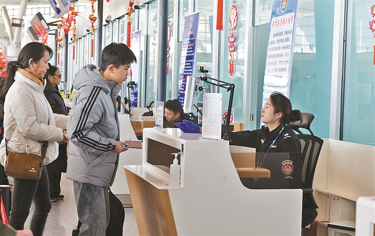 圖為工作人員為旅客辦理登機手續(xù)。記者 曲珍 攝