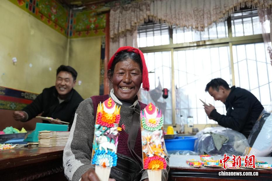 2月4日,隨著藏歷新年臨近,拉薩街頭年味漸濃,年貨市場上的“孜扎”迎來熱銷。酥油花藏語稱“孜扎”,是藏歷新年吉祥物切瑪盒的重要組件,也是藏族民眾家中必備的年貨。酥油花以酥油為主要原料,由匠人純手工捏制而成,造型涵蓋佛像、人物、花卉樹木、飛禽走獸等,常見圖案包含吉祥八寶、和諧四瑞、長壽圖等,承載著藏族民眾對新年平安吉祥、萬事順遂的美好祈愿。圖為手工藝人在制作酥油花。貢確 攝