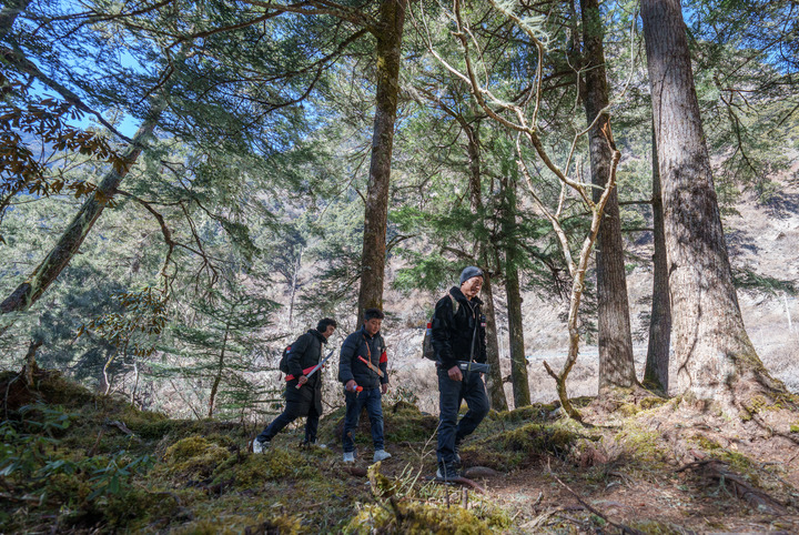 隨著海拔不斷降低,植被也越來越茂密。在密林里,道路七拐八繞。洛桑羅布抽出珞巴刀,不時砍去攔路的枝杈。