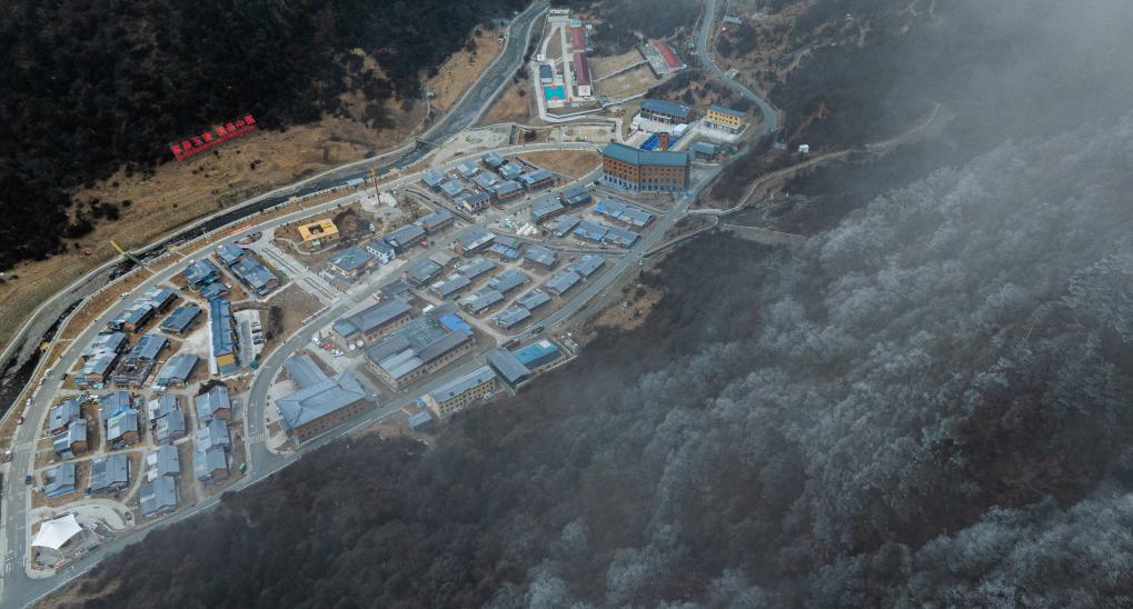 這是2月5日拍攝的云霧中的玉麥鄉(xiāng)全景(無人機照片)。新華社記者 丁增尼達 攝