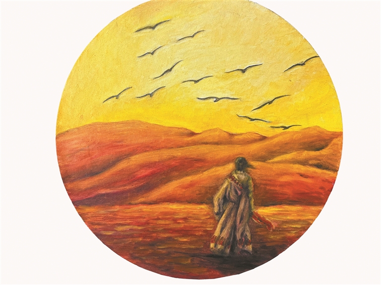 2014年退休后,唐瑟達(dá)娃迎來(lái)了更純粹的創(chuàng)作期。她主動(dòng)選擇了簡(jiǎn)樸的生活:不用手機(jī),遠(yuǎn)離網(wǎng)絡(luò)喧囂。相機(jī)和畫(huà)筆是她最忠實(shí)的伙伴。她可以為了捕捉草原日出的剎那,在晨風(fēng)中等待數(shù)小時(shí);也可以因午夜突來(lái)的靈感,披衣起身在畫(huà)布前涂抹至天亮。朋友們常常笑言:“一鉆進(jìn)畫(huà)室就好幾天找不到人!”