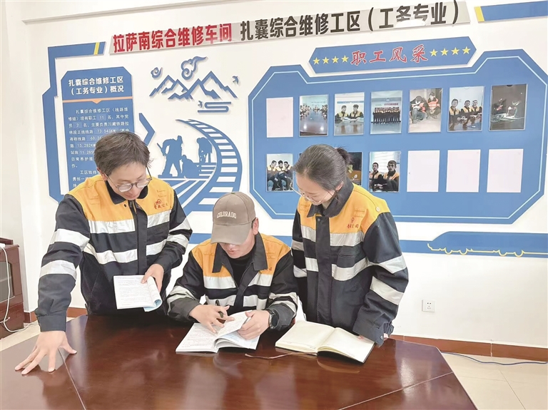 經(jīng)過系統(tǒng)規(guī)范的三級培訓,2025年10月,嘎瑪倫珠與白瑪措姆一同被分配到扎囊綜合維修工區(qū)。對于他們,這是職業(yè)生涯的嶄新起點,也是一場回饋家鄉(xiāng)、建設家鄉(xiāng)的初心之約?!吧铣踔袝r,第一次看見飛馳的火車,我心里便有了一個疑問,它是如何在這片高天厚土間穩(wěn)穩(wěn)穿行的?如今,我終于穿上作業(yè)服,成了守護列車前行的一員,這份驕傲,早已深深鐫刻在心底。”談及初心,嘎瑪倫珠的眼眸里,蕩漾著藏不住的自豪與堅定。