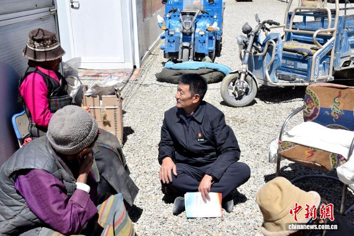 2025年3月21日,扎西尼瑪在日喀則市定日縣長所鄉(xiāng)安置點向受災群眾宣講兩會精神。(資料圖) 拉薩供電公司 供圖