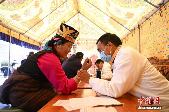 圖為達(dá)普天文觀測臺(tái)年度觀測活動(dòng)現(xiàn)場,西藏自治區(qū)藏醫(yī)院的專家為村民免費(fèi)義診。貢嘎來松 攝