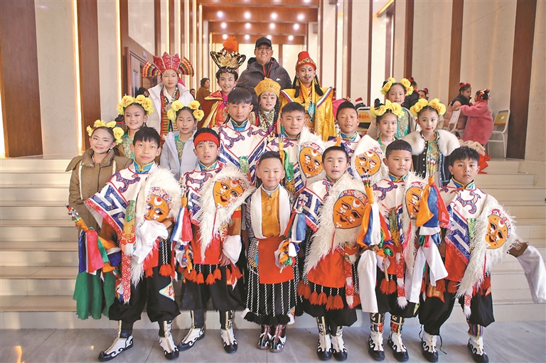 圖為中普瓊和自治區(qū)群藝館(區(qū)非遺保護中心)少兒藏戲班演出學生合影?!?/p>