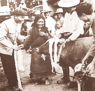 1959年,在中國共產(chǎn)黨領導下,百萬農(nóng)奴終于按人頭分得土地,再也不用向農(nóng)奴主繳納稅賦和差役。封建農(nóng)奴制的支柱轟然倒塌。