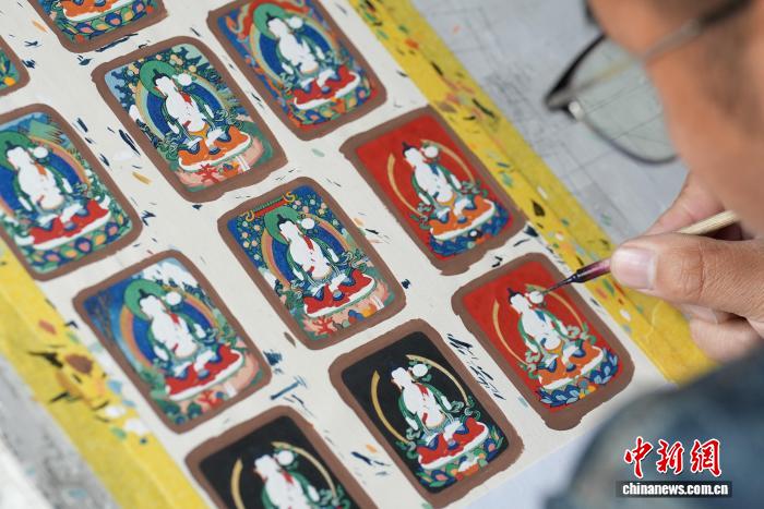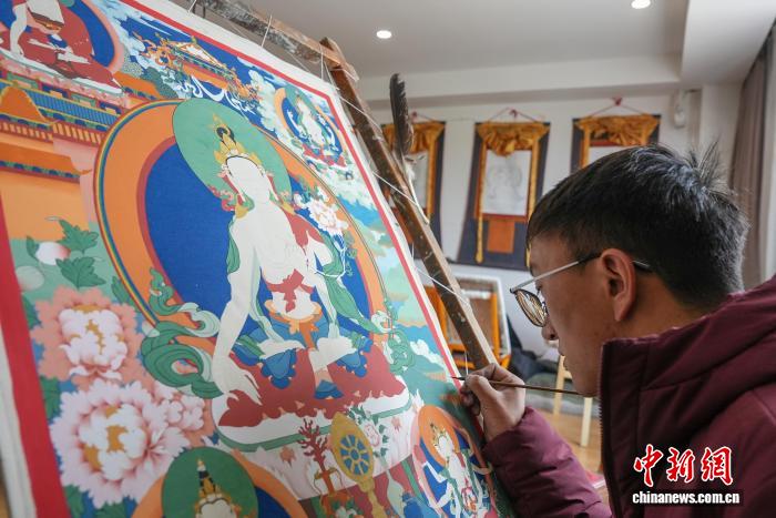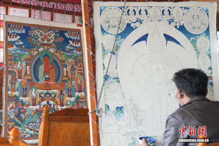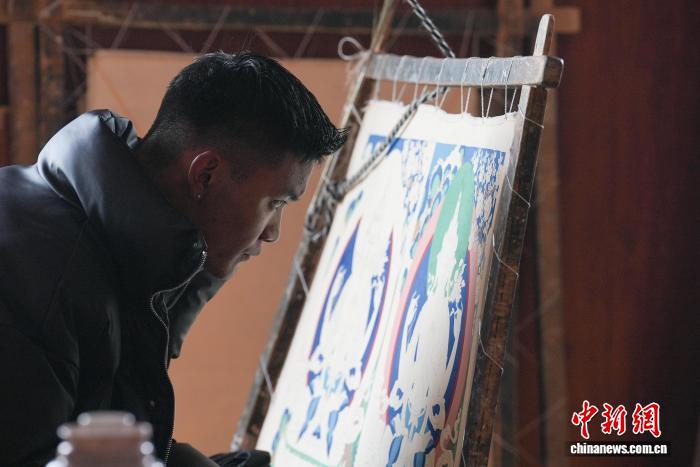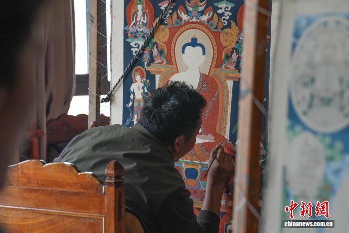 圖為畫師在繪制唐卡。貢確 攝