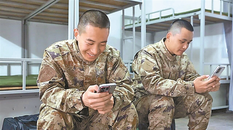 新兵通過視頻給家人報平安。
