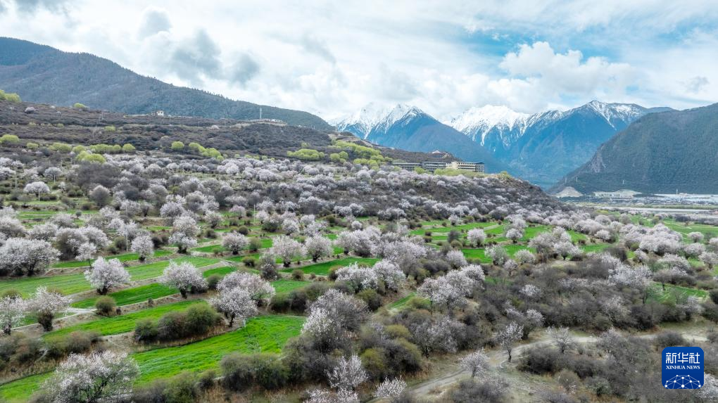 這是4月2日在林芝巴宜區(qū)朵當(dāng)村拍攝的桃林(無人機(jī)照片)。新華社記者 丁增尼達(dá) 攝