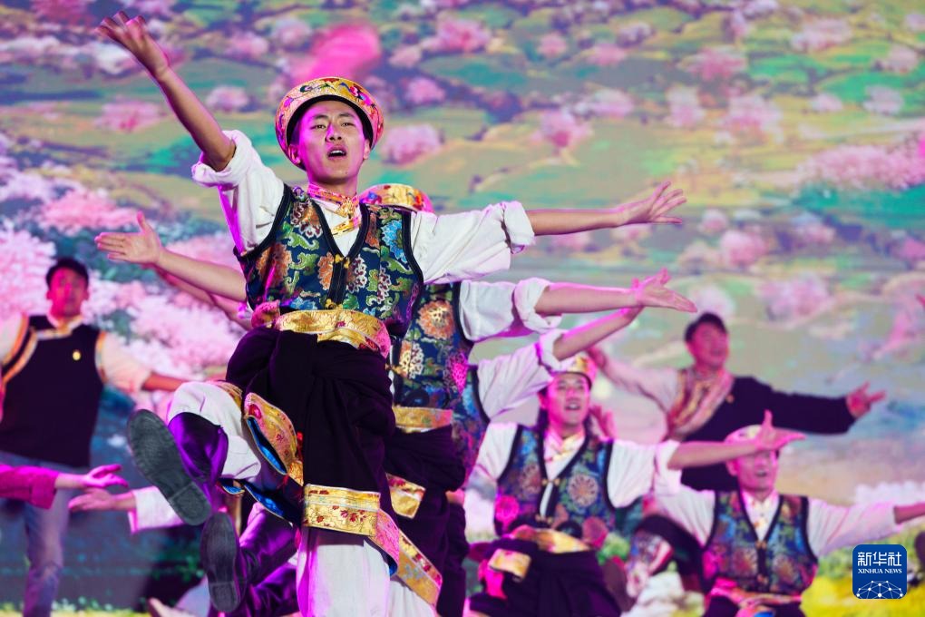 這是4月3日拍攝的林芝第二十三屆桃花旅游文化節(jié)開幕式文藝演出現(xiàn)場。新華社記者 丁增尼達(dá) 攝