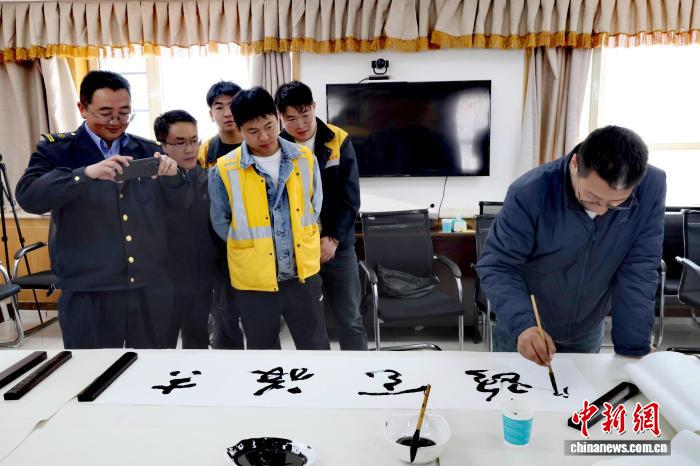 創(chuàng)作過程中,書法家們與現(xiàn)場干部職工親切交流,細(xì)致聆聽大家扎根高原、堅守一線的奮斗故事,深入了解站區(qū)工作日常與精神文化需求,針對性地創(chuàng)作專屬書法作品。干部職工們圍在一旁,認(rèn)真欣賞書法創(chuàng)作過程,細(xì)細(xì)品味筆墨之間的文化底蘊,紛紛拿出手機記錄精彩瞬間,現(xiàn)場氛圍熱烈而溫馨。一幅幅書法作品,致敬了一線職工堅守高原、保障安全,是對青藏鐵路發(fā)展成就的贊揚,讓干部職工在翰墨香氣中感受組織關(guān)懷,汲取精神力量。