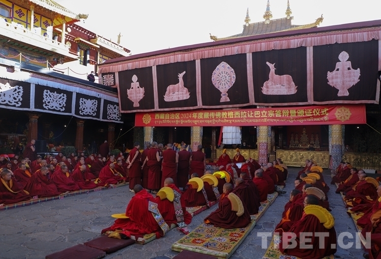 中國(guó)西藏網(wǎng)訊 2月28日,西藏自治區(qū) 2024年度藏傳佛教學(xué)經(jīng)僧人考核晉升格西拉讓巴學(xué)位立宗答辯暨頒證儀式在拉薩大昭寺舉行。
