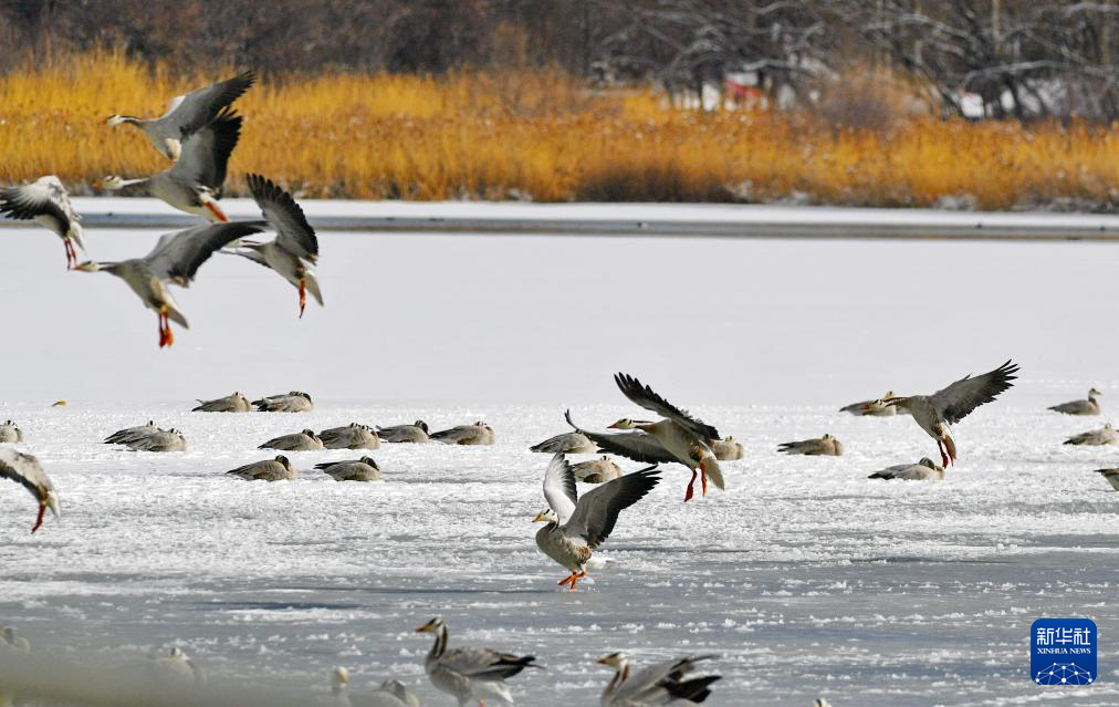 1月18日拍攝的拉魯濕地的斑頭雁。新華社記者 張汝鋒 攝