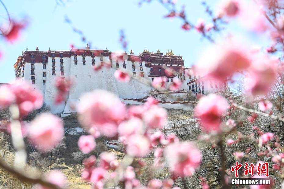 3月13日,在西藏拉薩宗角祿康公園,桃花競相綻放,春意盎然。