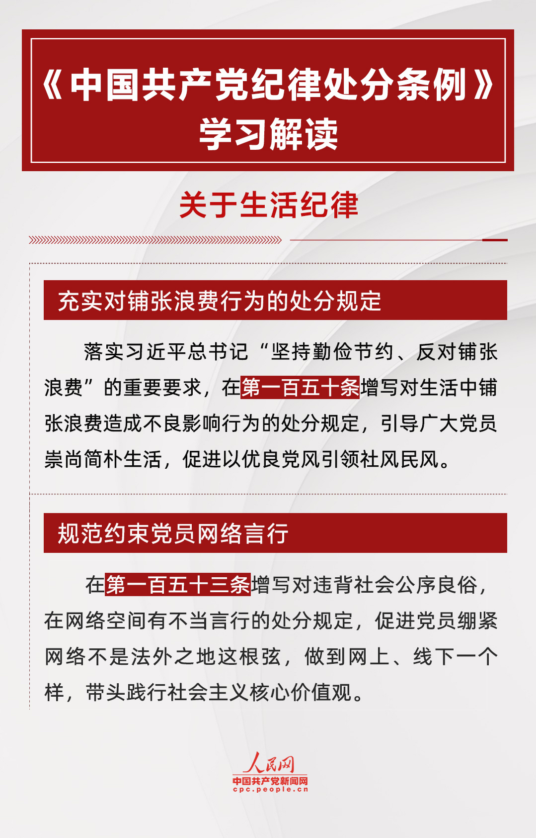 《中國共產(chǎn)黨紀律處分條例》關(guān)于“對違反生活紀律行為的處分”章節(jié)共5條,修改2條。