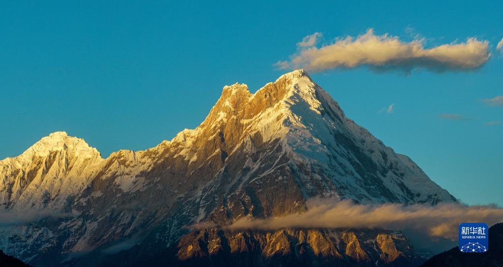 夕陽(yáng)下的加拉白壘峰(11月28日攝,無(wú)人機(jī)照片)。新華社發(fā)(董志雄 攝)