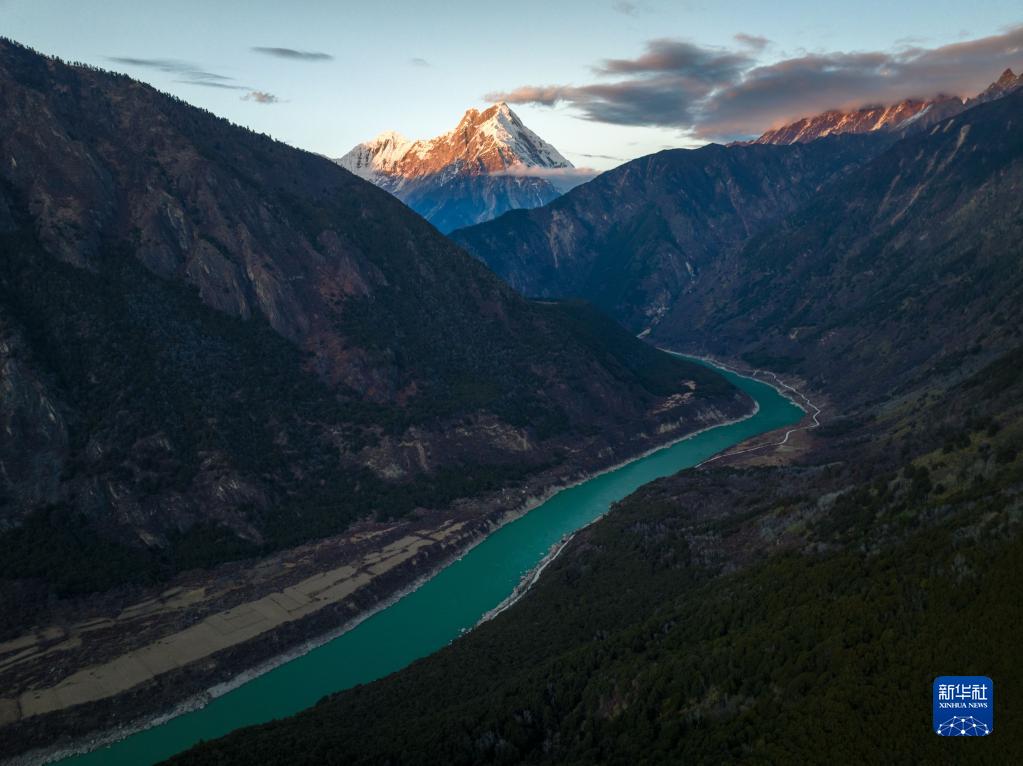 冬日里,夕陽(yáng)照映下的雅魯藏布江大峽谷更顯靜謐深邃,景色如畫。