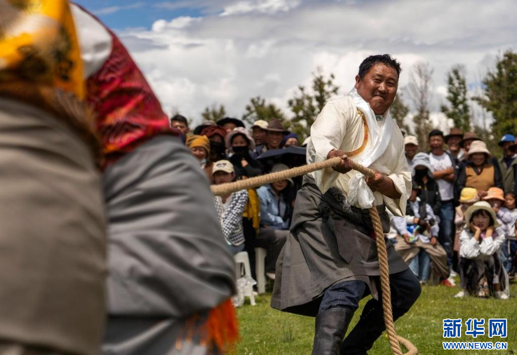圖為達孜“望果節(jié)”拔河比賽現(xiàn)場(7月28日攝)。新華網(wǎng)發(fā) 李騰 攝