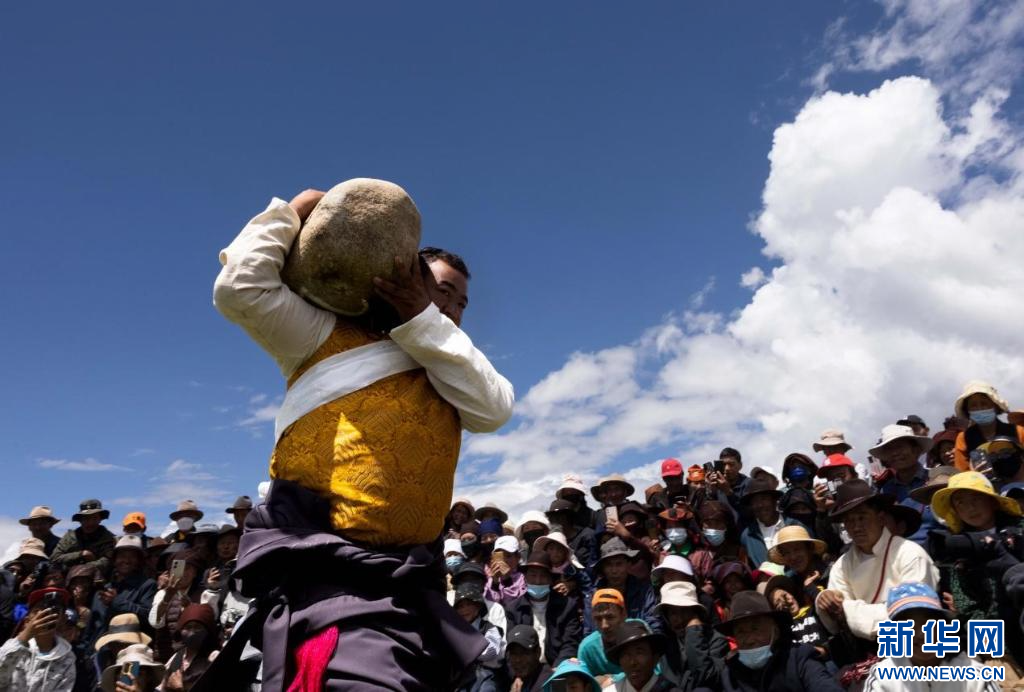 圖為達孜“望果節(jié)”抱石頭比賽現(xiàn)場(7月28日攝)。新華網(wǎng) 旦增努布 攝