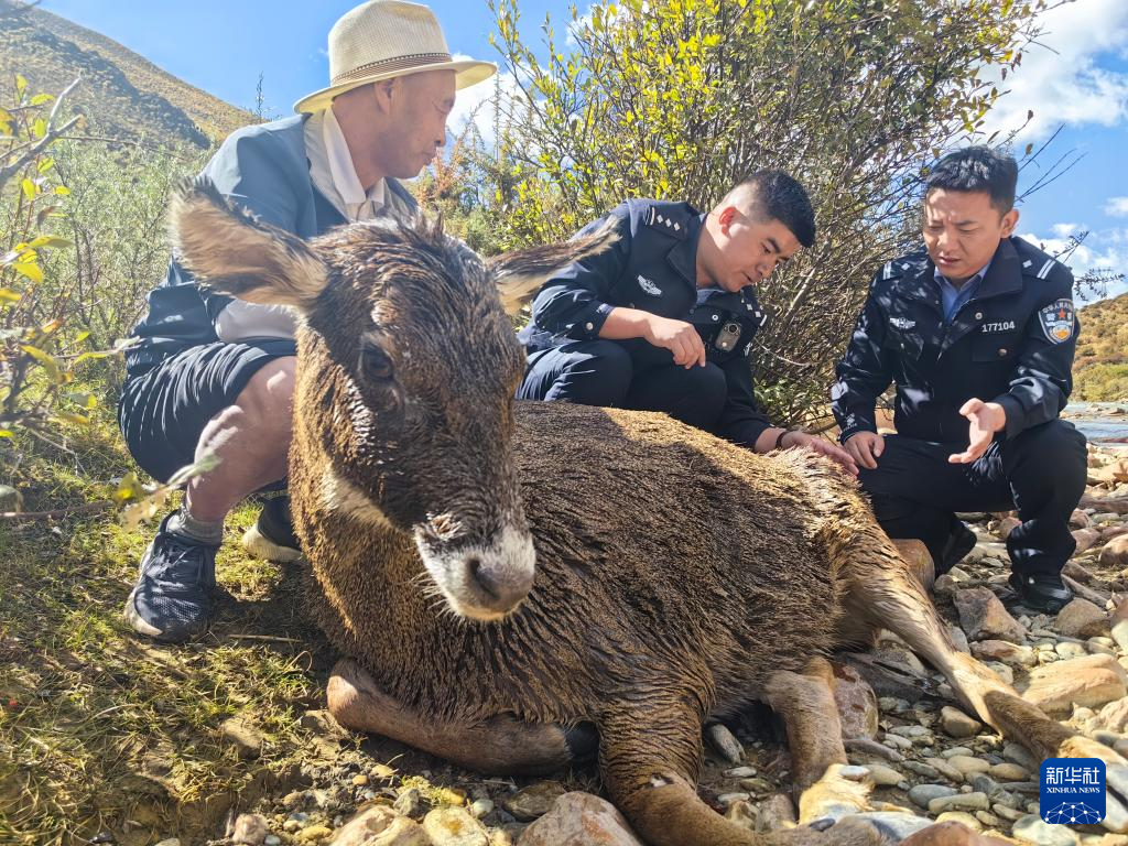 當日,在西藏拉薩市墨竹工卡縣扎西崗鄉(xiāng),一只受傷的國家二級保護動物馬鹿在渡河時被困于河中。墨竹工卡縣扎西崗鄉(xiāng)派出所干警和獸醫(yī)發(fā)現(xiàn)被困馬鹿后,立即下河展開救援,最終將馬鹿救起。據(jù)介紹,當?shù)毓哺删磕甓紩M行野生動物救援行動,為這里的野生動物保駕護航。
