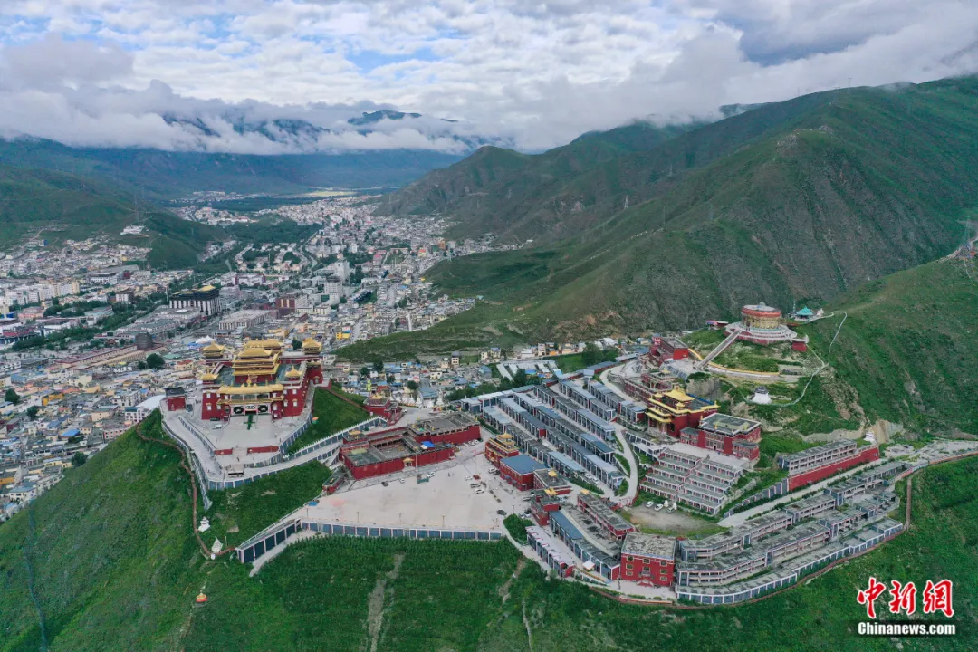 2023年8月4日,航拍青海省玉樹藏族自治州玉樹市城區(qū)。中新社記者 馬銘言 攝