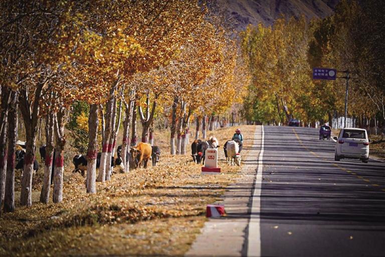 G318被稱為“中國景觀大道”,沿途壯麗絕美的風光令人心醉神迷。恰風和日麗的一天,記者一行驅車前往G318曲水段與達孜段。一路層林盡染,落葉飄飛,如詩如畫,美不勝收。