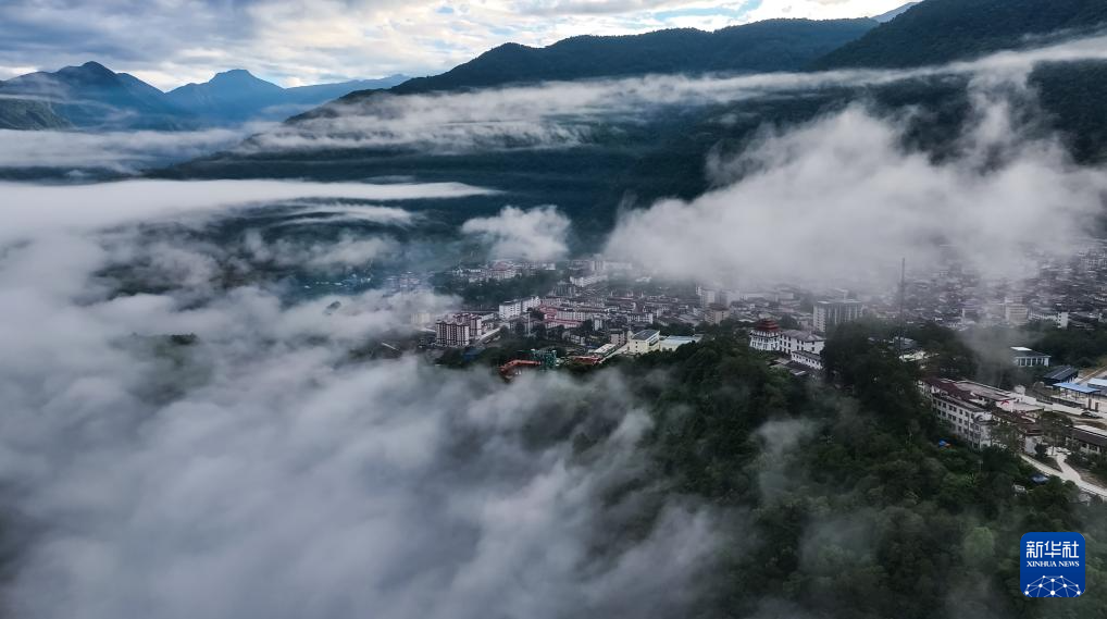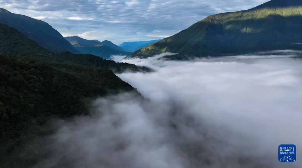 這是11月11日拍攝的墨脫縣云海景觀(無人機照片)。新華社記者 普布次仁 攝?
