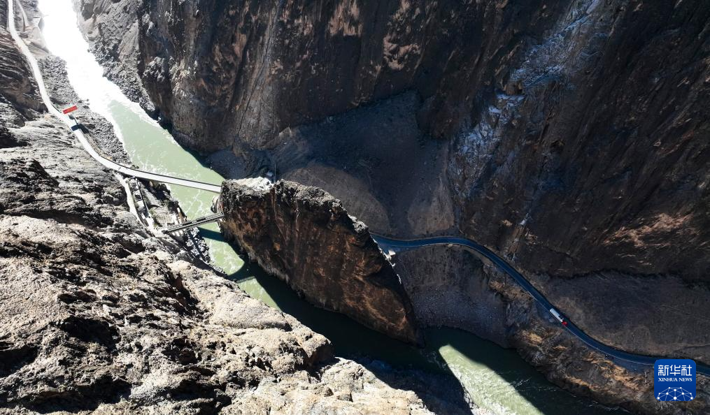 這是11月16日拍攝的位于西藏自治區(qū)昌都市八宿縣境內(nèi)的怒江大橋(無(wú)人機(jī)照片)新華社記者 楊帆 攝